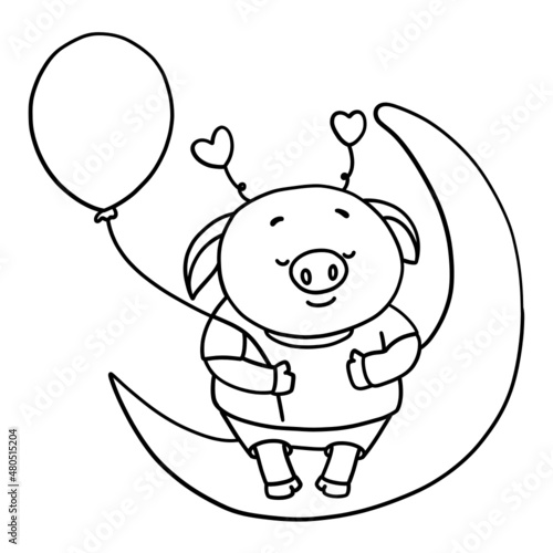 Obraz premium Valentine Pig outline design-SVG illustration for web, wedsite, application,...