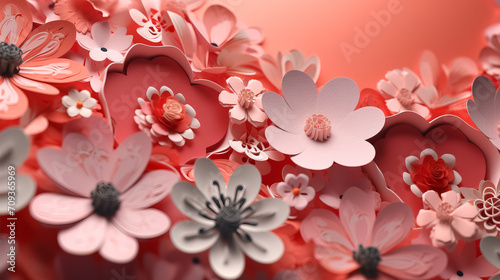 Fototapeta premium Valentine's day background. Colorful paper cut flowers