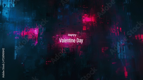 © Dexter, Obraz premium Valentine's Day Background with Glitch Background And Happy Valentine's Day Text