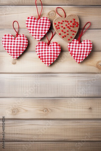 Fototapeta premium Valentine's day background with hearts and clothespins on wooden wall