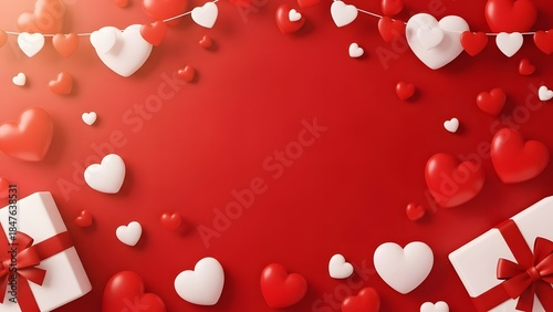 © NarayonChandro, Obraz premium Valentine s day background with hearts and gifts