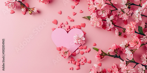 © Arslan, Fototapeta premium Valentine's Day Background with Pink Flowers and Heart Envelope
