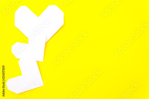 © Maryna, Fototapeta premium valentine's day card, origami heart, it is yellow. Copy space