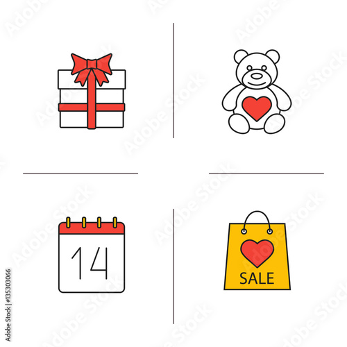 Fototapeta premium Valentine's Day color icons set