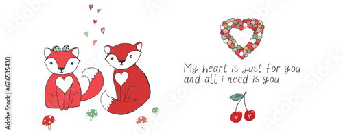 Fototapeta premium Valentine's day foxes vector illustrations set.