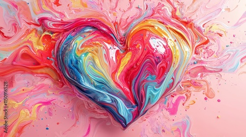 Fototapeta premium Valentine's day heart art creative studio abstract painting colorful swirls emotional expression