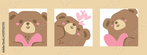 Obraz premium Valentine's Day square cards. Sticker set with Cute Brown Bears