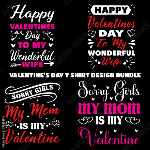 Fototapeta premium Valentine's Day t shirt design bundle typography vector romantic romance...