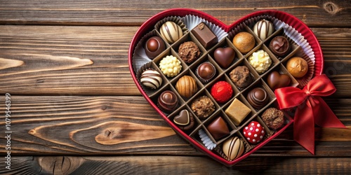 Fototapeta premium Valentine's Day themed chocolate box filled with assorted chocolates, Valentine's Day, love, romance, sweets, treats, gift