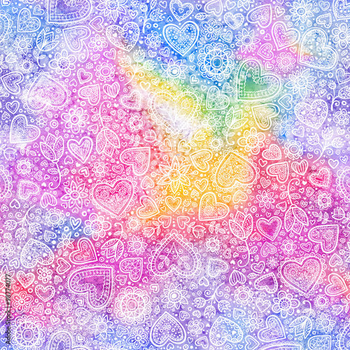 © art_of_sun, Obraz premium Valentine's day watercolor hearts background