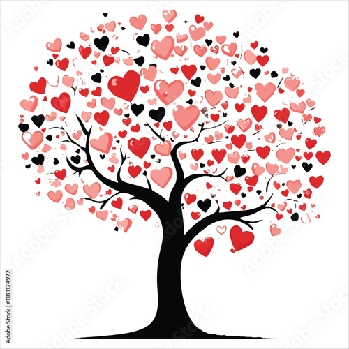 Obraz premium Valentine tree Vector with hearts