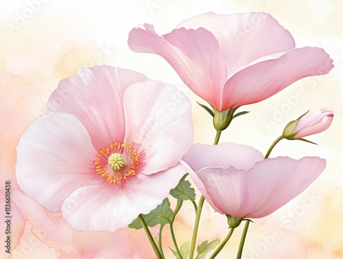 © Jiraphiphat, Fototapeta premium valentine watercolor flowers charming concept, A delicate arrangement of pink flowers, featuring soft petals and gentle hues, set against a light, dreamy background.