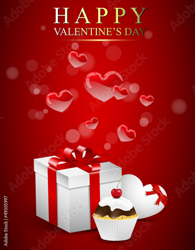 © oxygendesign021, Naklejka premium Valentines card with cupcake