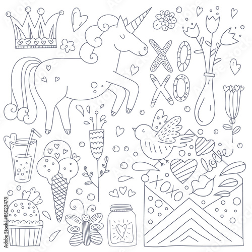 © faveteart, Obraz premium Valentines Day Doodle Collection