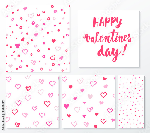 © Ms.Moloko, Fototapeta premium Valentines day herts patterns set with lettering design elements