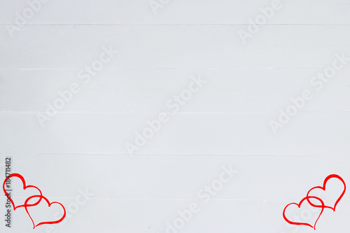 © Mila, Obraz premium valentines day. White wood background with red heart, copy space, top view