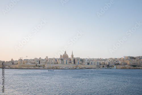 © elifilm, Fototapeta premium Valetta city the capital of Malta panoramic view from Sliema town