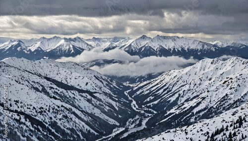 Obraz premium Vallée enneigée sous un ciel nuageux