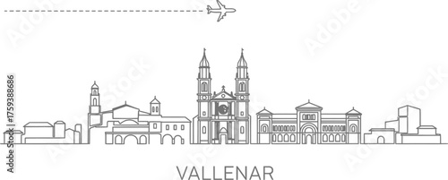 Obraz premium Vallénar Skyline with Airplane and Dash Line