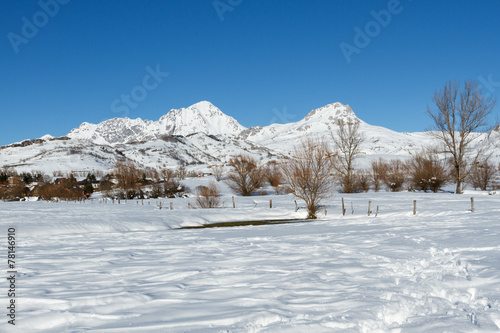 Obraz premium Valle de San Emiliano y Macizo de Peña Ubiña nevados. León.