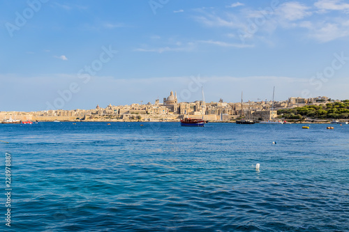 Naklejka premium Valletta, Malta. Scenic view of the city from the bay