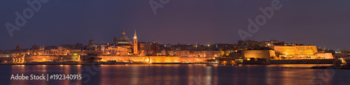 Fototapeta premium Valletta Panorama At Night, Malta