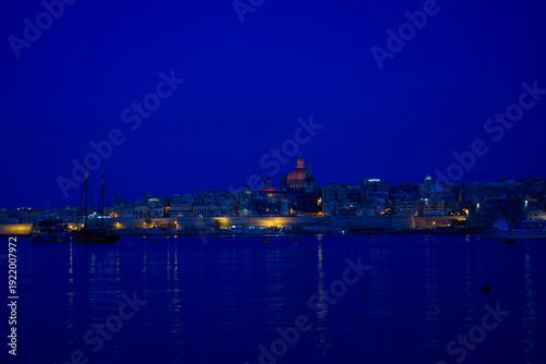 Obraz premium Valletta Skyline at Dusk — Malta’s Timeless Glow Across the Harbour