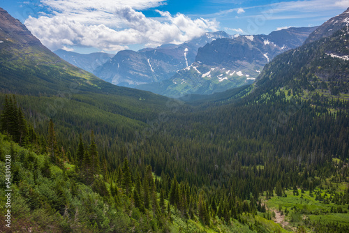 © Jonathan W. Cohen , Fototapeta premium Valley of Pine Trees at Glacier National Park
