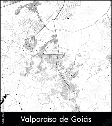 © Kuemin, Obraz premium Valparaiso de Goias city map, Brazil - Topographic vector map poster