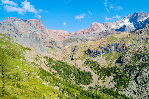 © Silvano Rebai, Fototapeta premium Valtellina (IT) - Vista aerea della valle presso il Rifugio Bosio