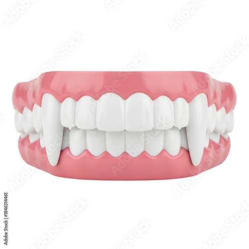 © PECHA, Fototapeta premium Vampire fangs in pink gums isolated on transparent background