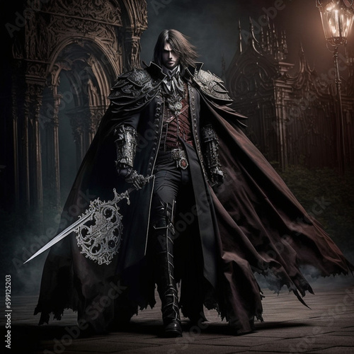 © DRAW, Fototapeta premium Vampire knight guarding Dracula's castle|Generative AI