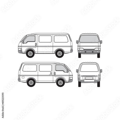 © agnguswiarni, Fototapeta premium van outline, year 1992, freight and forwarding, isolated white background, front, back and side view, part 2