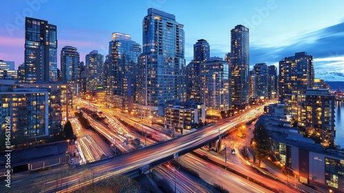 © arisa, Obraz premium vancouver cityscape night lights highway traffic