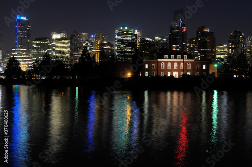 Fototapeta premium Vancouver skyline and Deadmans Island reflected in Coal Harbour from Stanley...