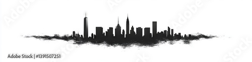© MKS, Naklejka premium Vancouver skyline in silhouette with its reflection. The landscape of Vancouver, British Columbia. A modern illustration