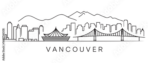 © Mofazzelh, Naklejka premium Vancouver Skyline Line Art Vector Cityscape. with white background