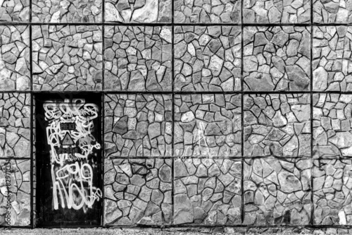 © johndwilliams, Fototapeta premium Vandalized Door and Stone Wall