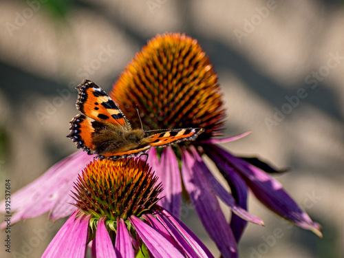 Obraz premium Vanessa Atalanta butterfly for breakfast on Echinacea purpurea