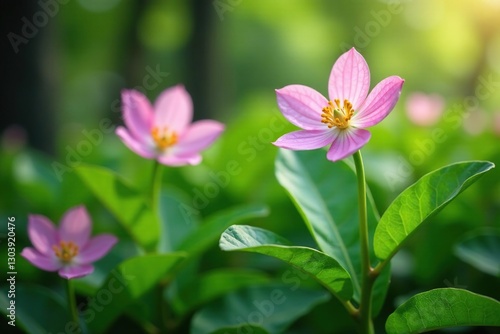 © Patthama, Fototapeta premium Vanilla bean plants with blooming flowers and growing leaves, blossom, bloom