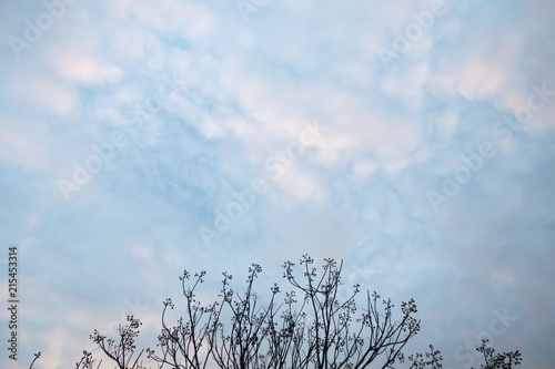 Obraz premium vanilla blue sky with clouds and tree , landscape view outdoor at countryside