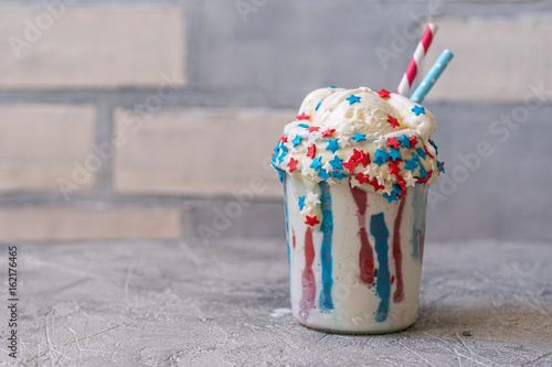 Obraz premium Vanilla funfetti milkshake with ice cream. Patriotic drink cocktail