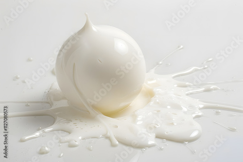 © Oksana_Latysheva, Fototapeta premium Vanilla ice cream ball scoop with milky splash with drops isolated on white background