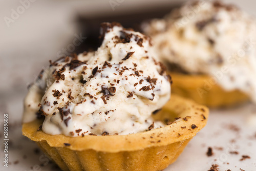 Fototapeta premium Vanilla ice cream with chocolate chips - straciatella. Fresh, sorbet