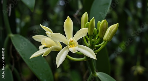Obraz premium Vanilla Orchid Bloom: Delicate Beauty in Lush Green Foliage