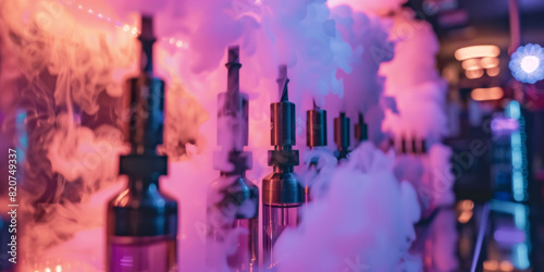 Fototapeta premium Vape Devices in a Trendy Vapor Lounge with Neon Lights