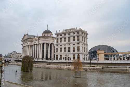 Fototapeta premium Vardar river crossing through Skopje downtown.
