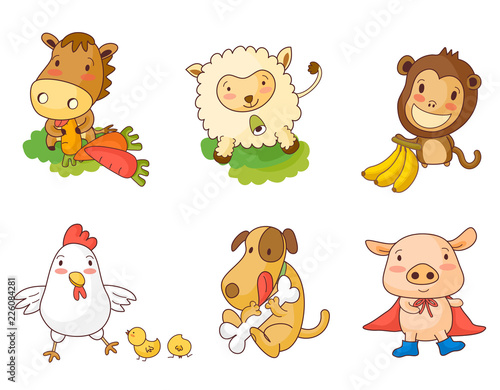 © zzve, Naklejka premium Variation of colorful objects displayed in a row against white background