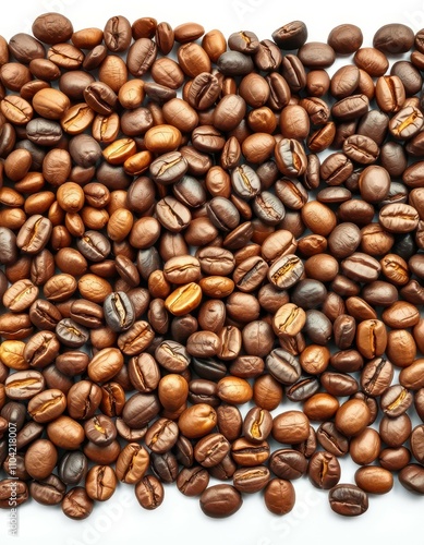 Fototapeta premium Varied shades of roasted coffee beans spread out on a surface for background...