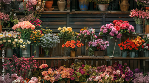 © Loony Dream Designs, Naklejka premium Variety of flowers on display at florist shop floral market seamless pattern